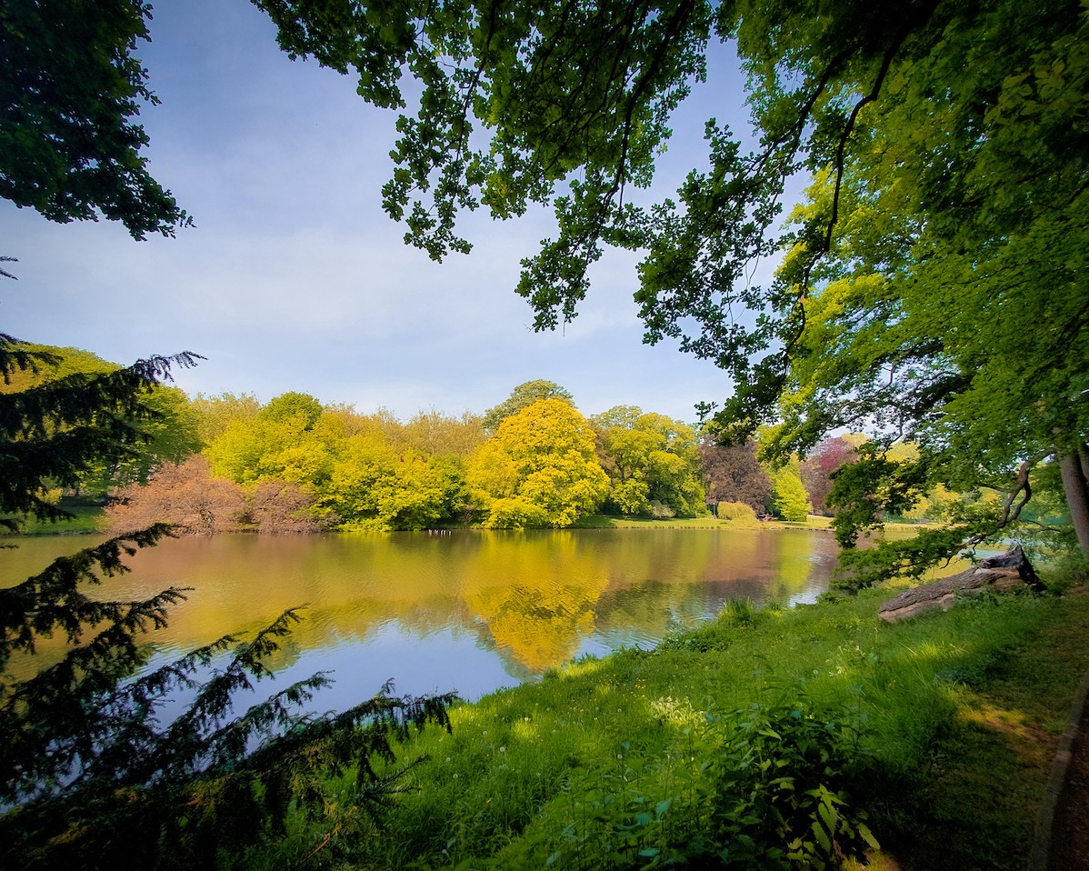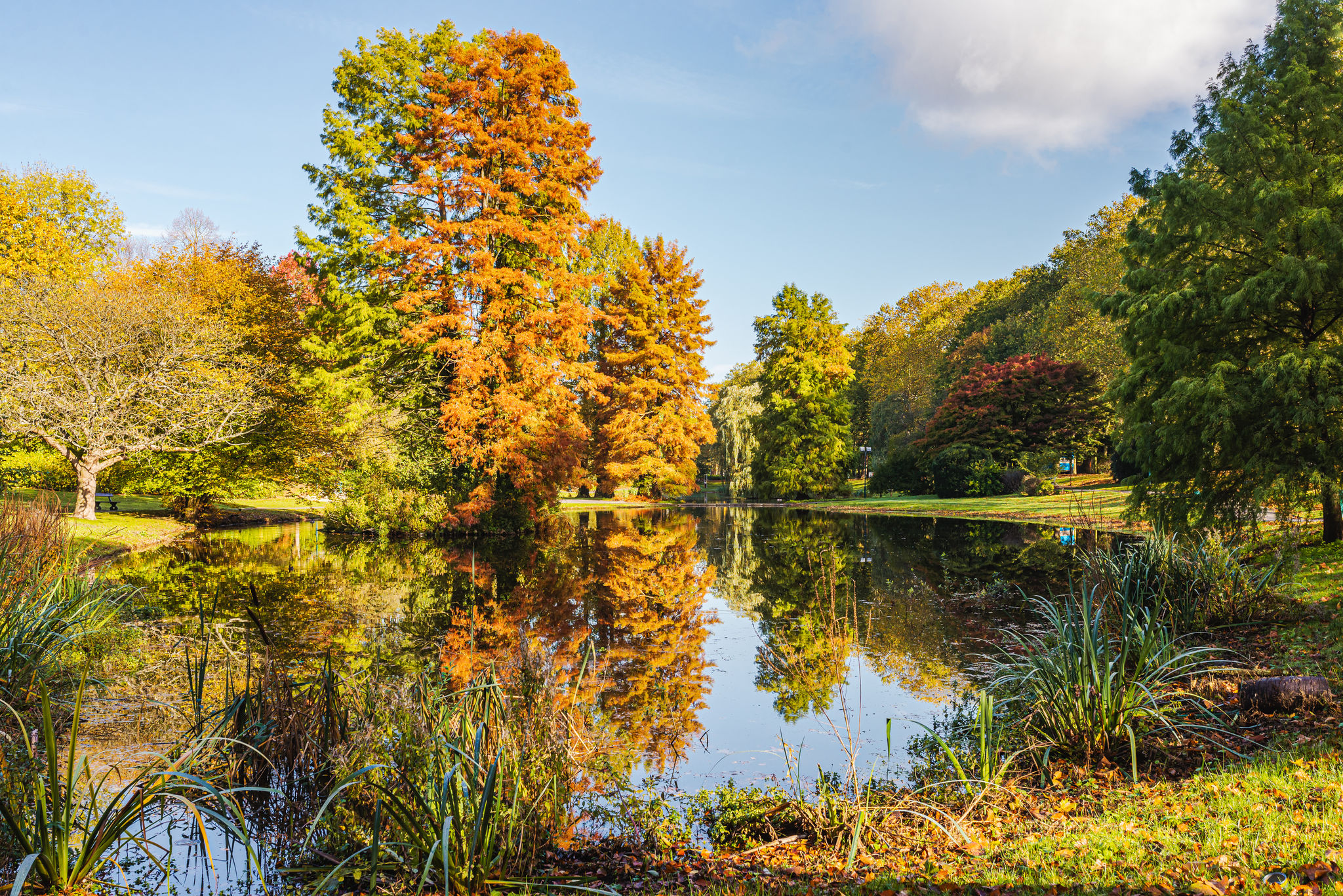 Just on the edge of the Sonian forest lies Parc du Leybeek and its former fishponds, created for the 1958 World Fair alongside the imposing Atomium. Landscape architect René Pechère imported trees from Europe, North America and Asia, including superb Japanese maples, for the project. The valley floor was designed around a figure-eight-shaped pond dug on the site of former marshes.