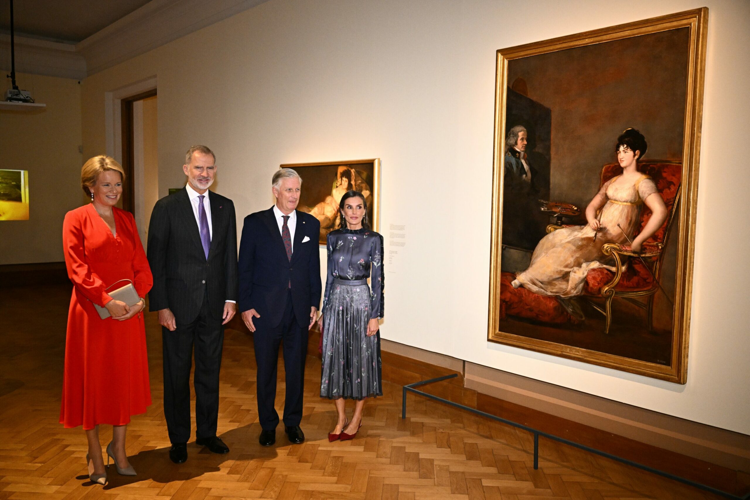 Queen Mathilde of Belgium, King Felipe VI of Spain, King Philippe of Belgium and Queen Letizia of Spain pictured during a visit to the exhibition 'Light and Shadow: Goya and Spanish Realism', the opening ceremony of the Europalia España arts biennial, Tuesday 7 October in Brussels. Credit: Belga / Jasper Jacobs