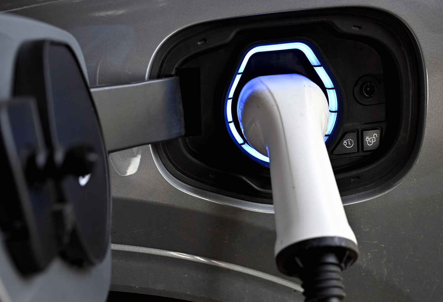 A person charges a hybrid electric vehicle. Credit: Belga/Eric Lalmand