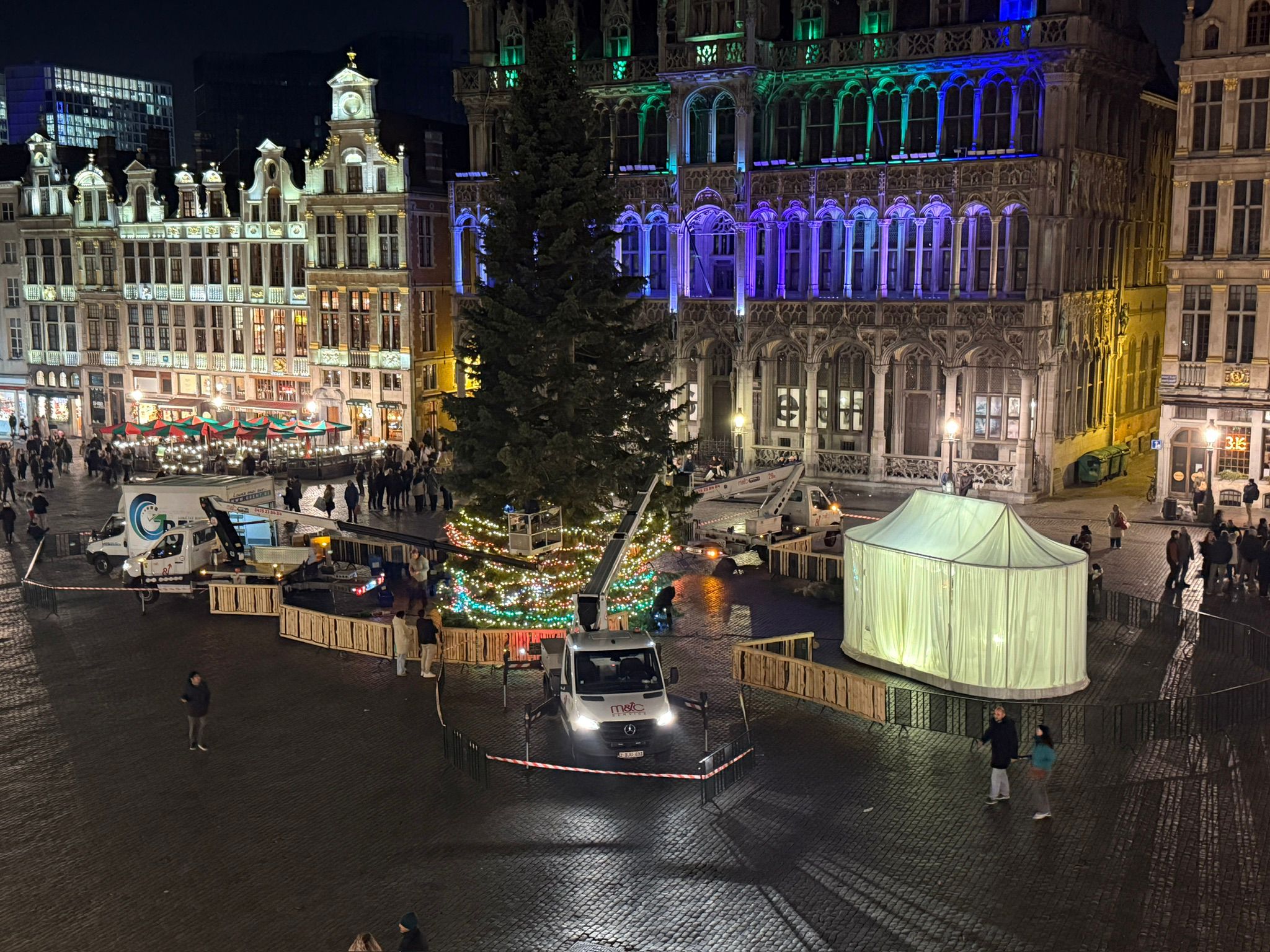 Decorating the Christmas tree on Wednesday 26 November. Credit: The Brussels Times
