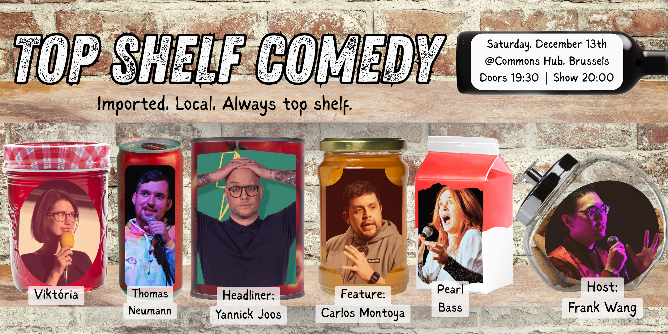 This Saturday, shake off the winter blues and head along to the group's exceptional showcase, 'Top Shelf Comedy', featuring the likes of Brussels-based Yannick Joos, Venezuelan Carlos Montoya, and supporting acts from around the world.