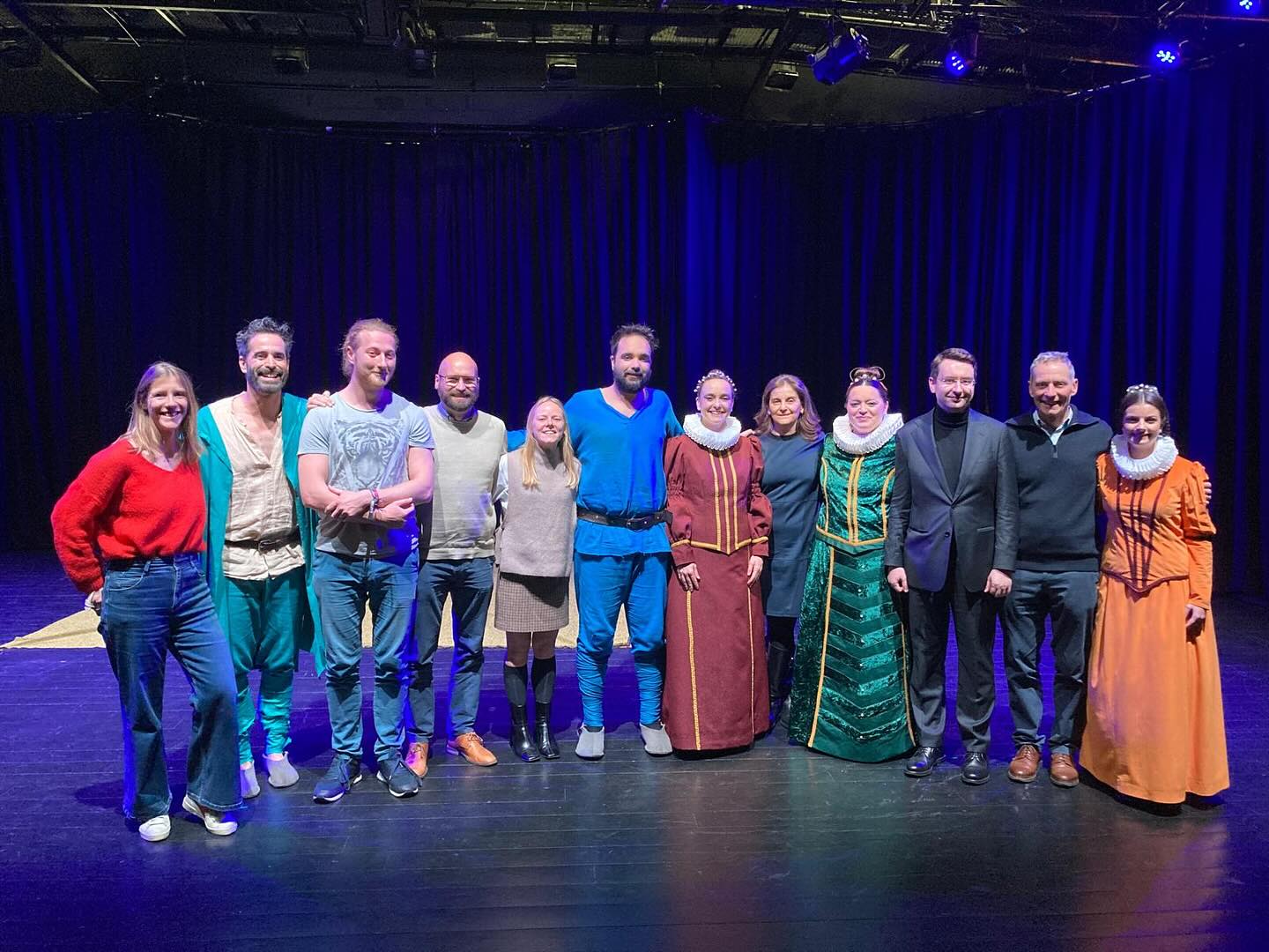 Rafael Plata, second from left, and the rest of his cast in 'La Ternura' and members of the Instituto Cervantes. Credit: TeatroBE