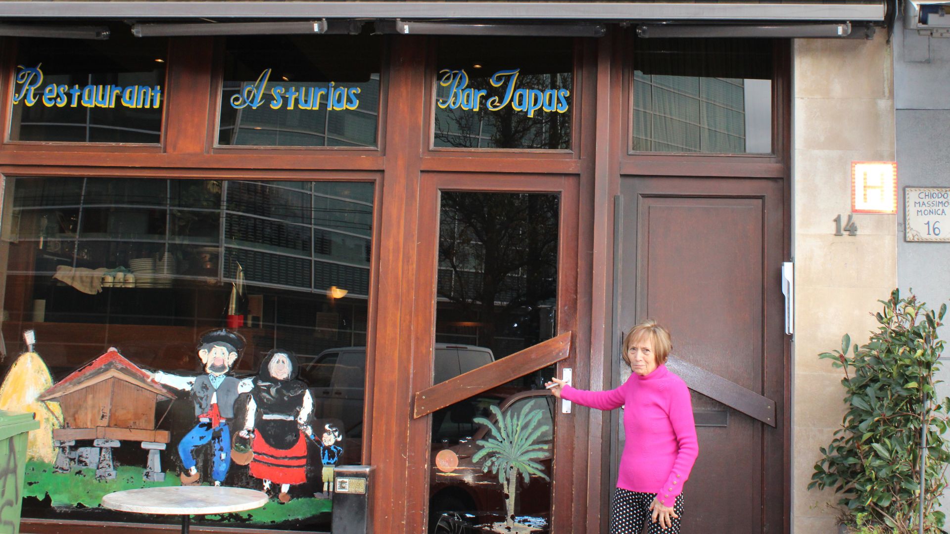 Aurora González, standing outside her restaurant Bar Asturias in Brussels. Credit: The Brussels Times / Isabella Vivian