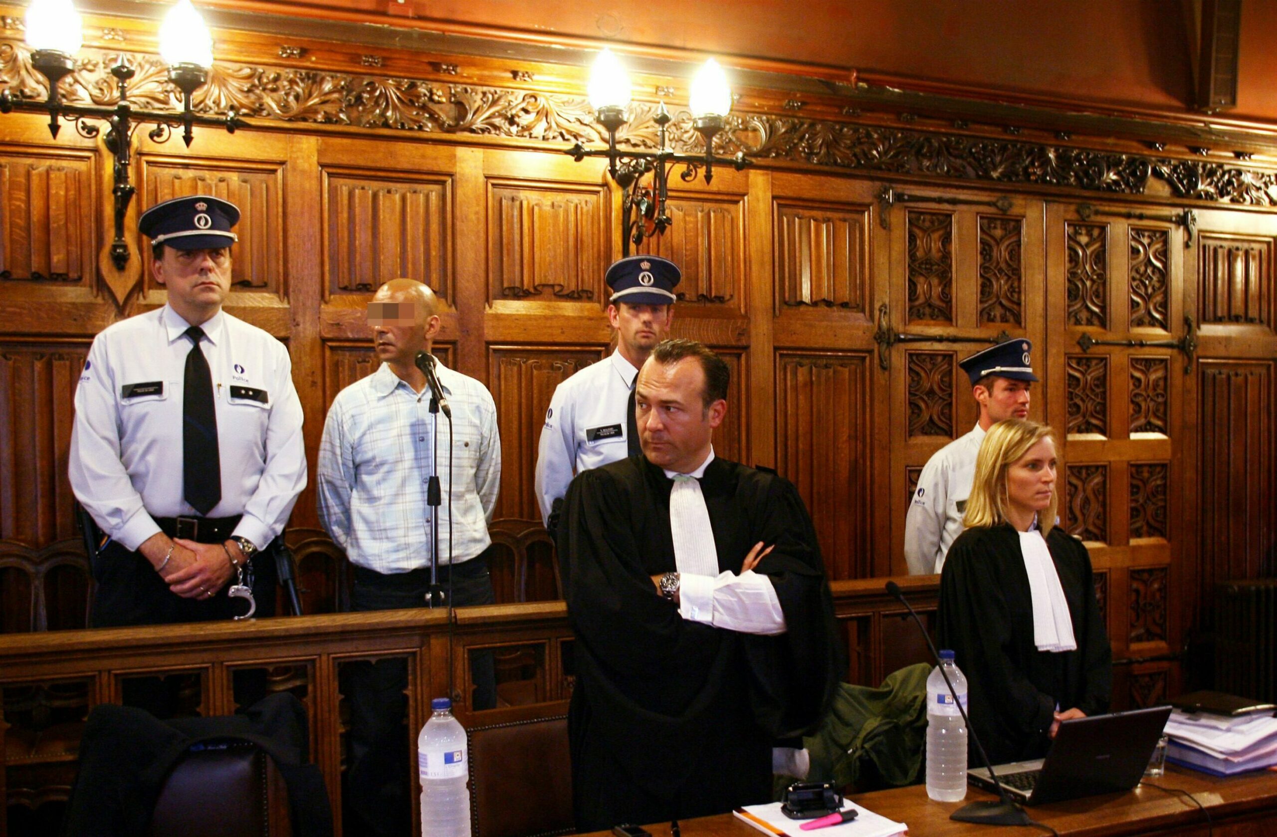 Caroline Poiré and fellow barrister Olivier Martins on the third day of Abdallah Ait Oud's trial at the Liège assize court, 28 May 2008. Credit: Belga / Michel Krakowski
