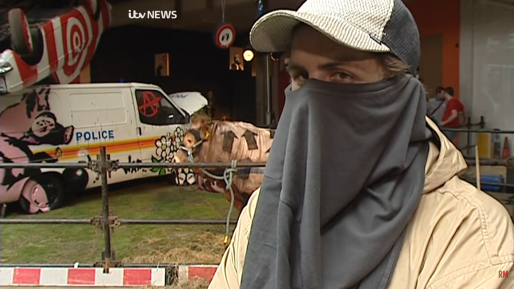 In 2003, the man in the frame gave an interview to the BBC during the artist's official 'Turf War' exhibition, claiming to be Banksy. It is still unclear if the video actually depicts the mural artist. Credit: YouTube screen grab / Robert Murphy