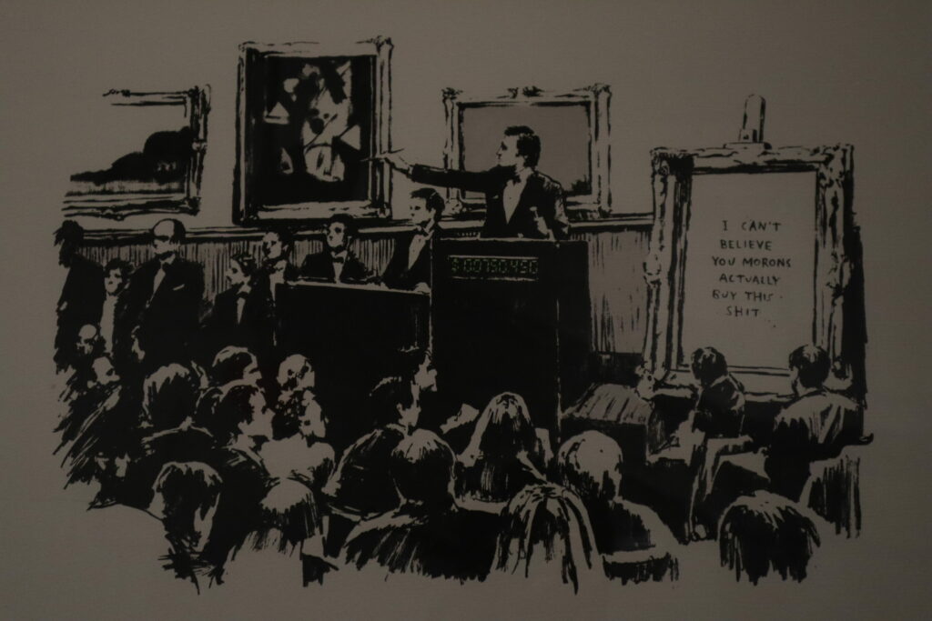 Reproduction of Banksy's work criticising the fine arts scene. Credit: Kosmos Khoroshavin / The Brussels Times