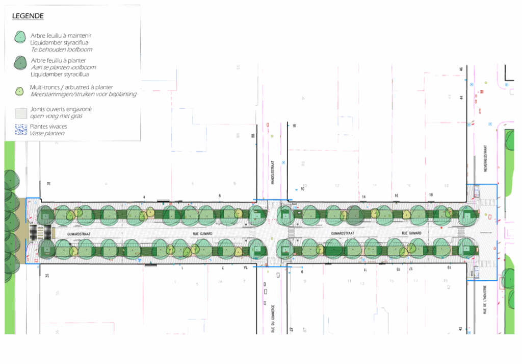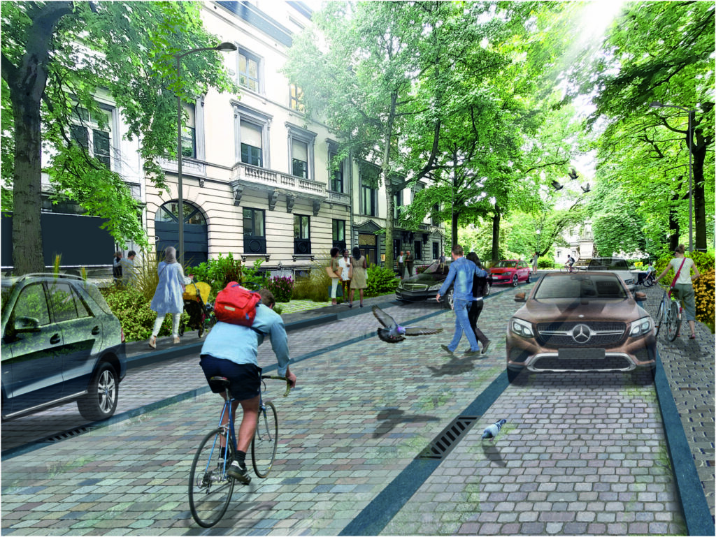 The trees suffer from a lack of space for their roots, which causes them to push up the street, affecting their health. Now, urban.brussels has granted planning permission for the complete redevelopment of the street.