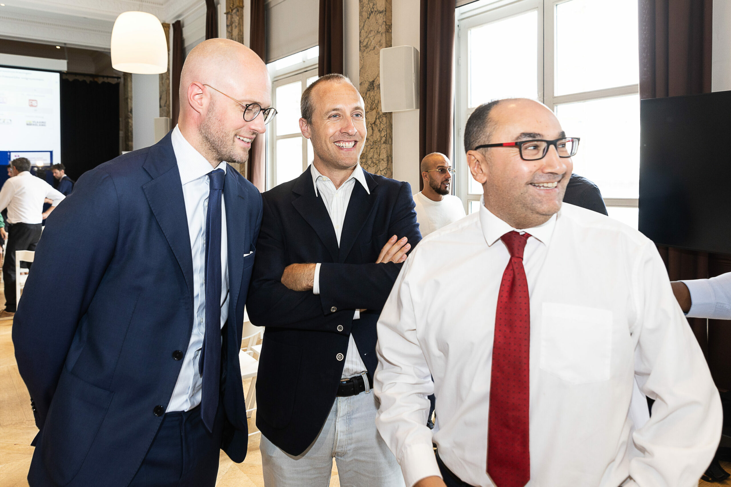 MR's David Leisterh, Les Engagés' Christophe De Beukelaer and PS' Ahmed Laaouej. Credit: Belga/James Arthur Gekiere