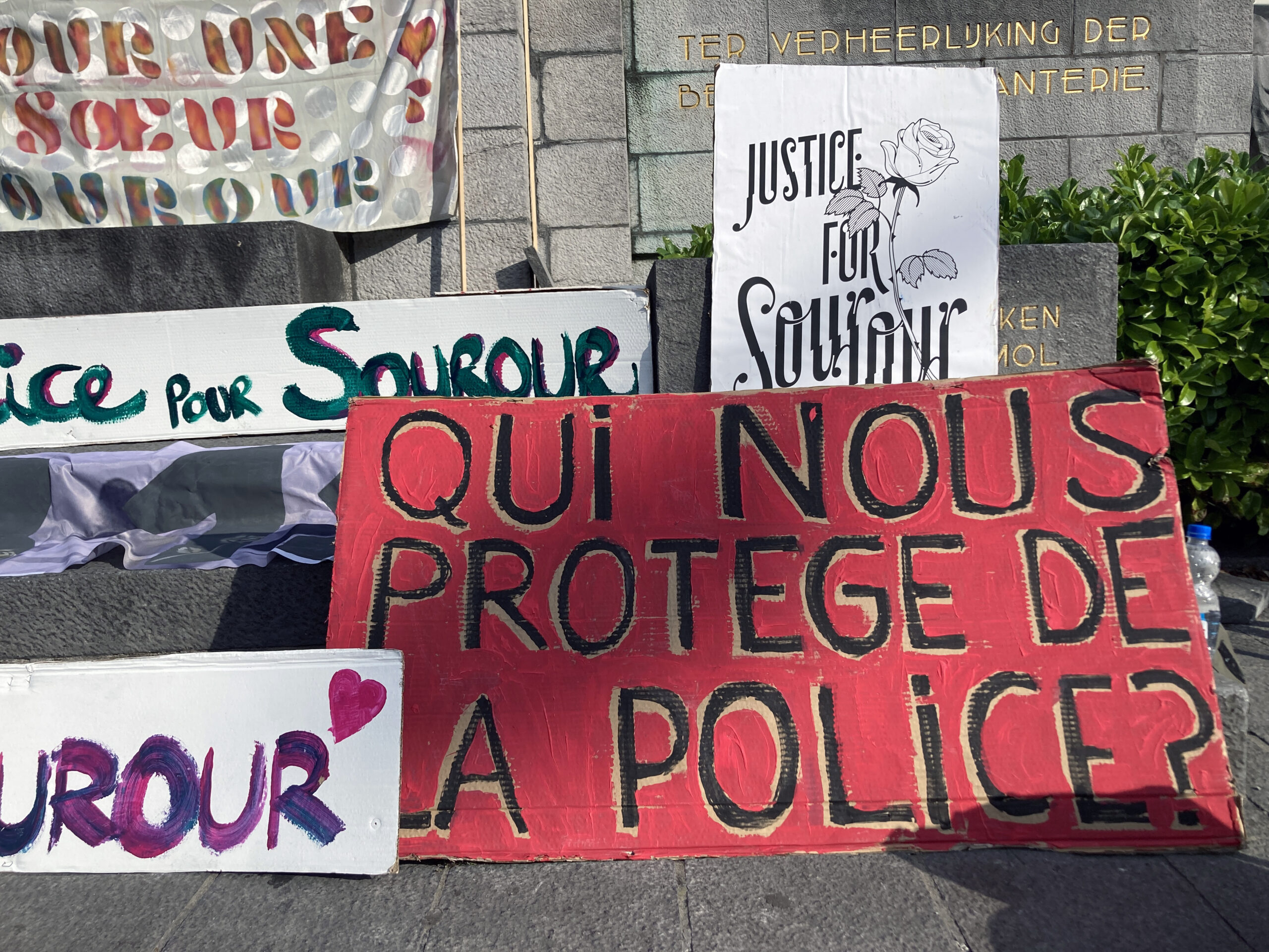 The protest concerns the particular case of alleged police violence involved in the death of Sourour Abouda, who died in a Brussels police cell in January 2023.