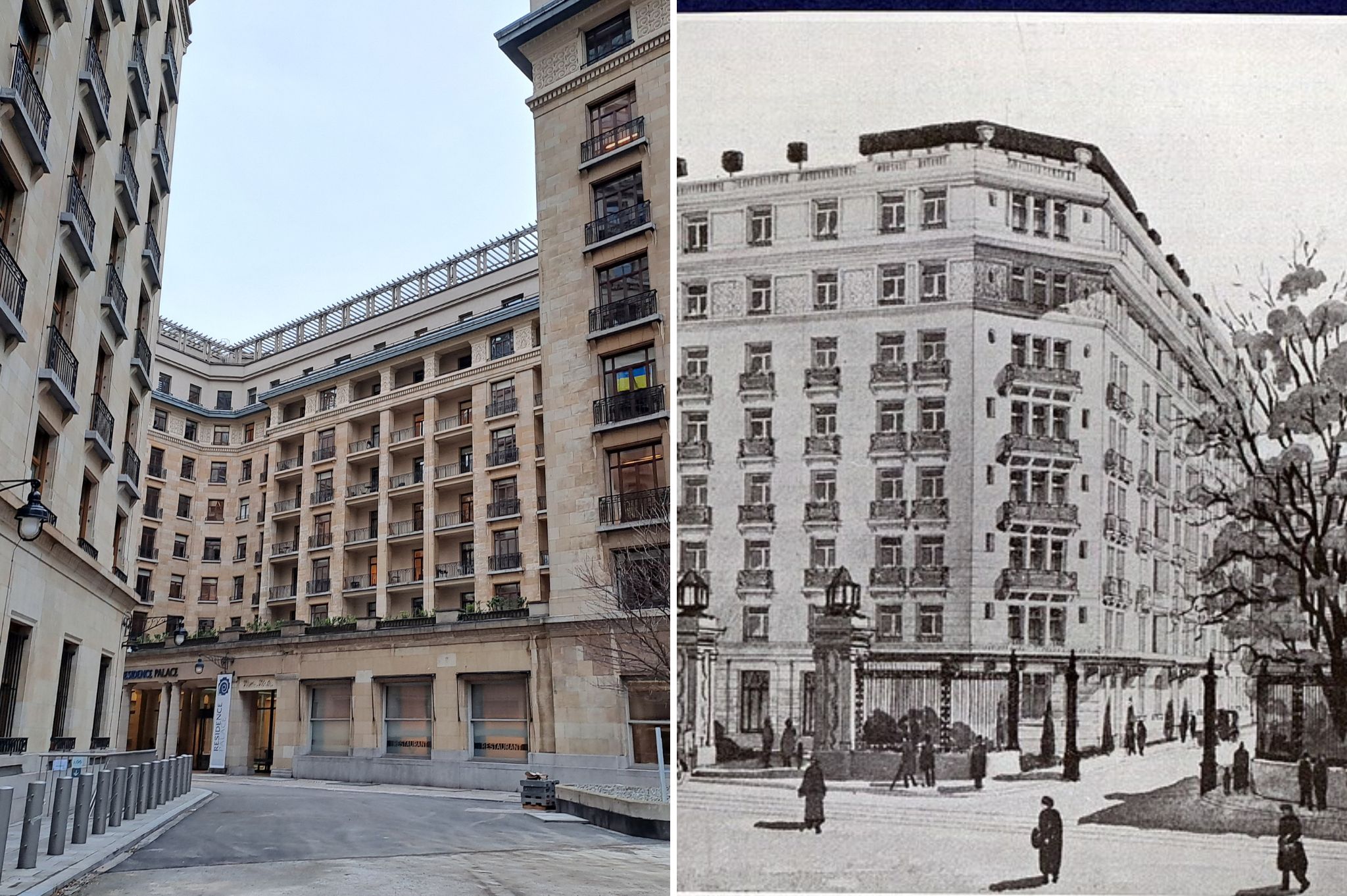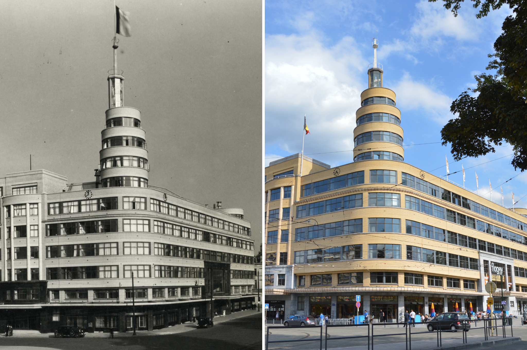 The National Institute of Radio Broadcasting in Flagey, shortly before the war (L) and the building today.