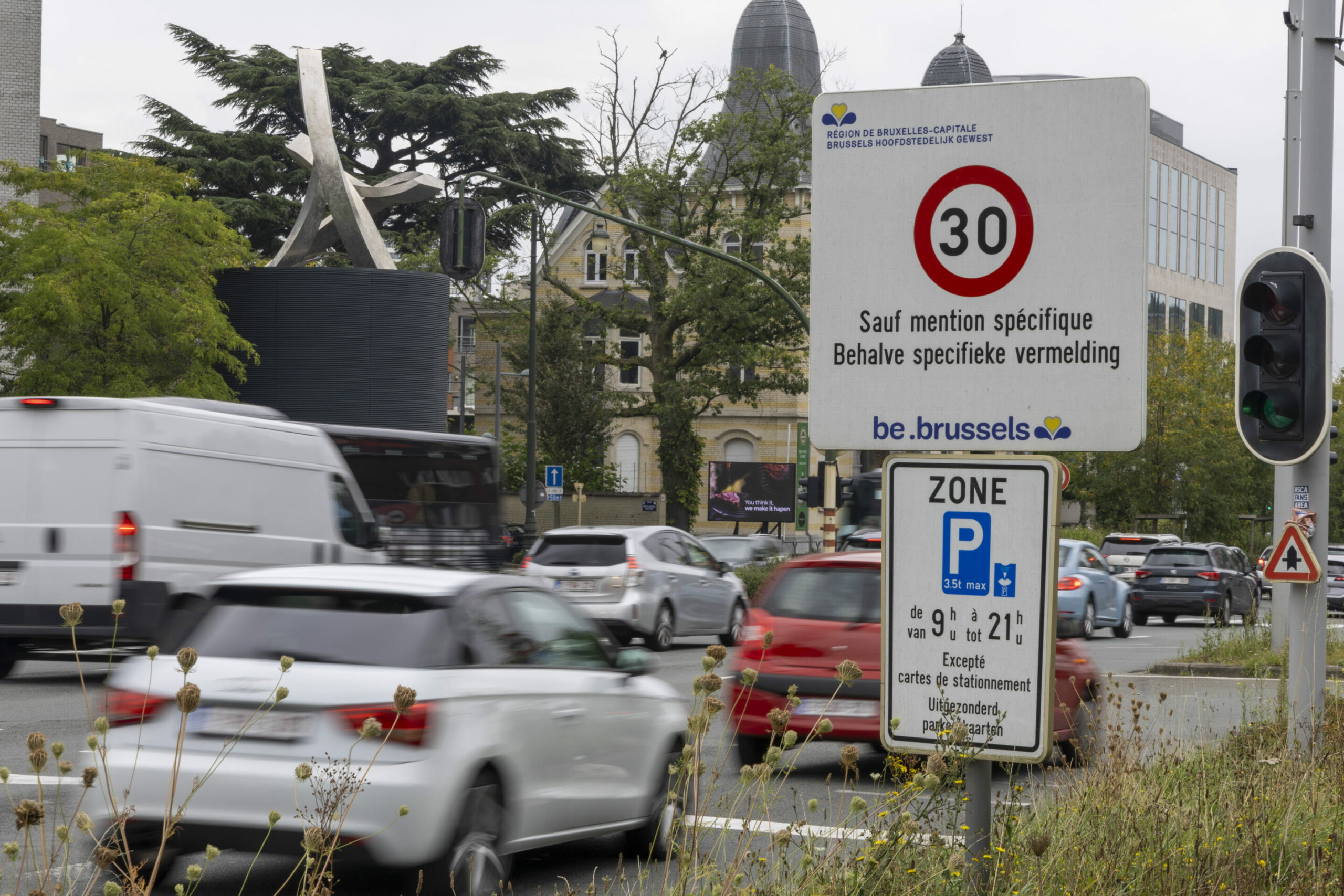 A sign introduces the 30km/h speed limit in the low-emission zone in Ganshoren, Wednesday 4 September 2024. Credit: Belga/Nicolas Maeterlinck
