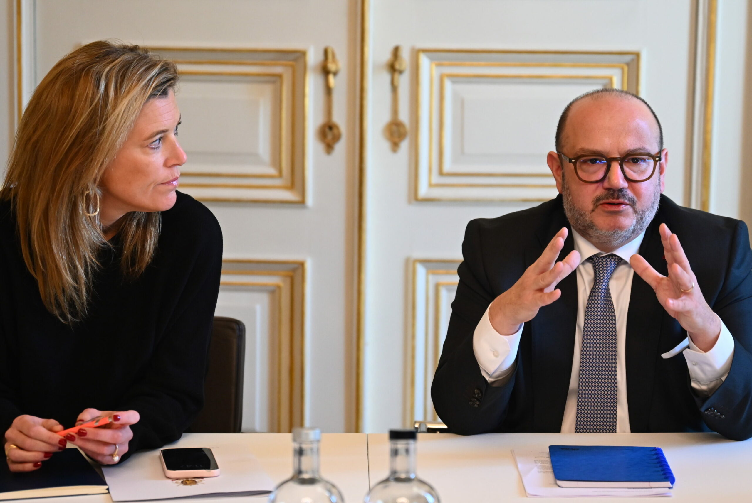 Justice Minister Annelies Verlinden (left) and Interior Affairs Minister Bernard Quintin organise a meeting to discuss recent shootings incidents. Credit: Belga/Eric Lalmand
