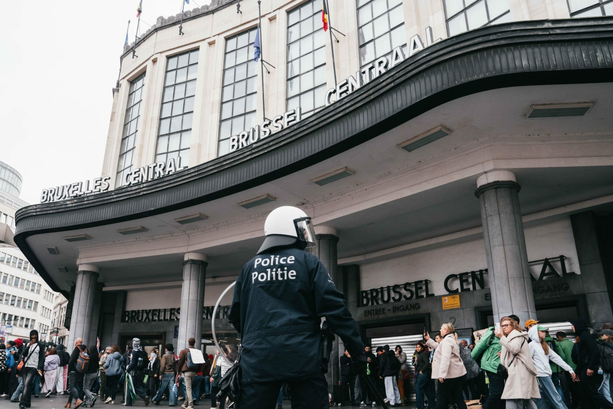 A police officer in front of Brussels-Central station during the national strike. Credit: Belga/Marius Burgelman