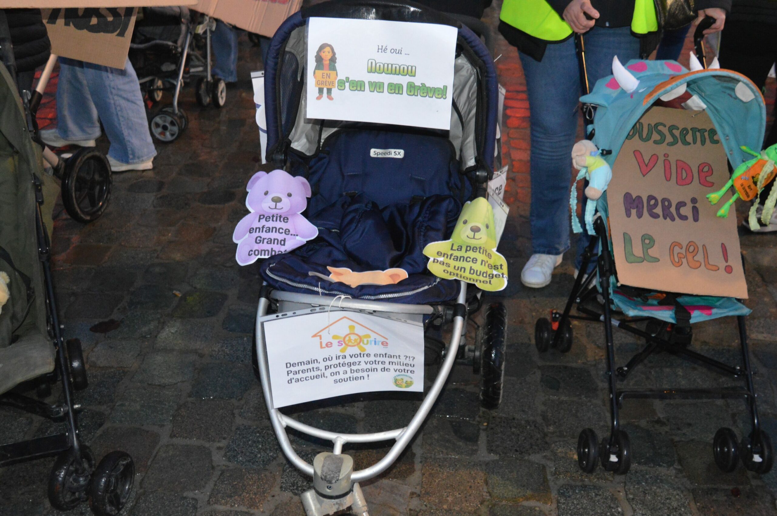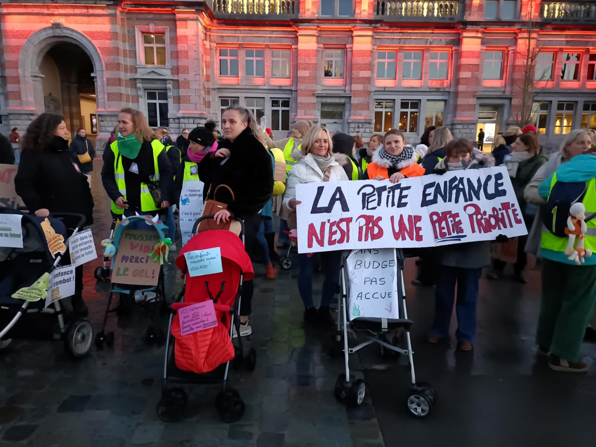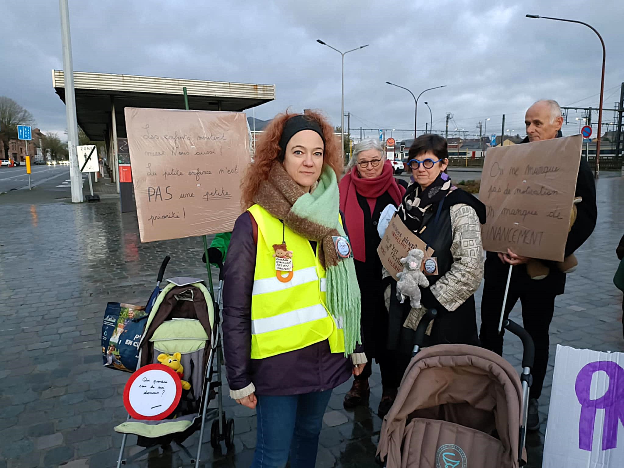 Protestors gathered in front of the Tournai station, in Wallonia, and expressed concerns about budgetary measures and staff shortages impacting nurseries and other childcare services from the French-speaking community.
