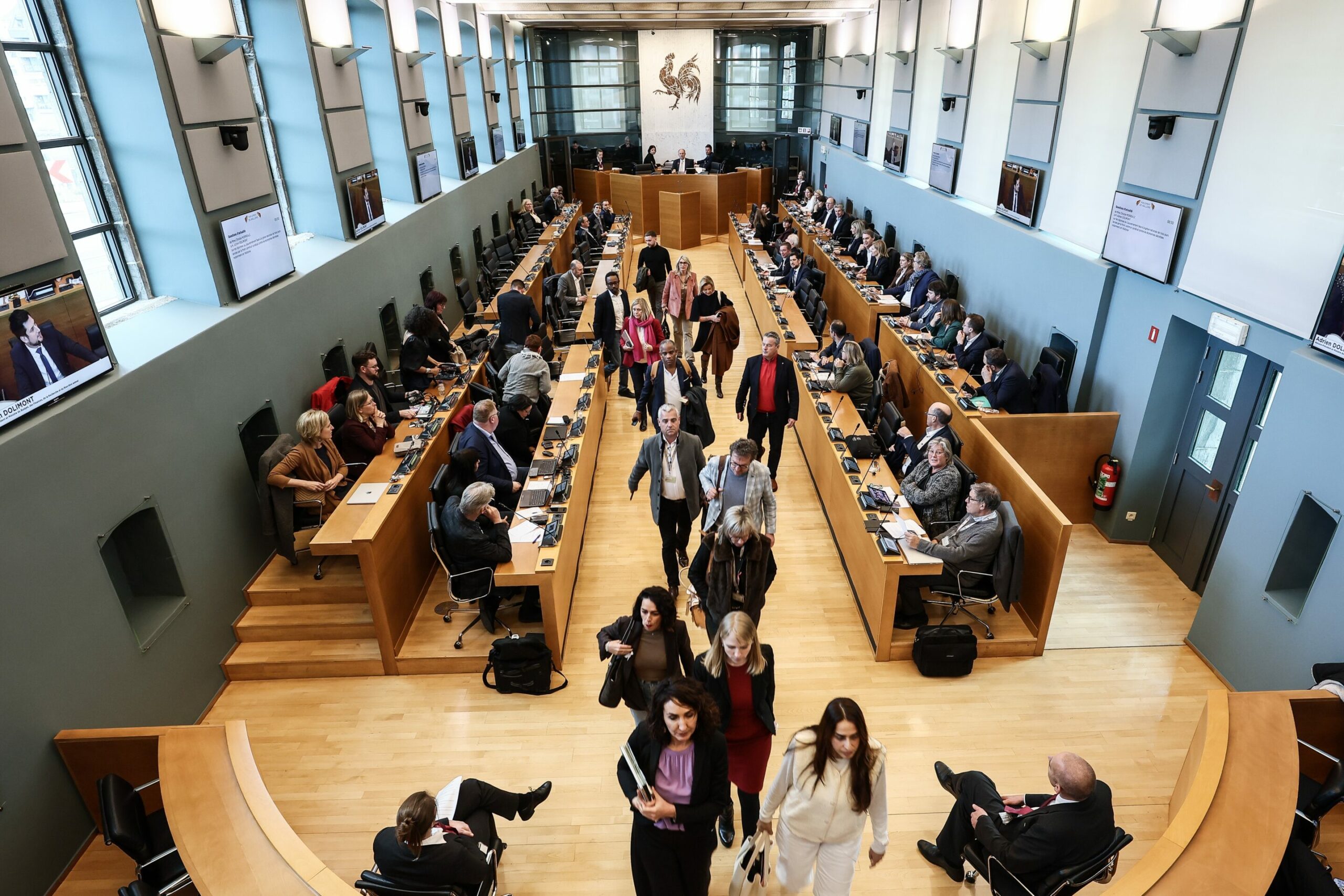 Politicians leave a plenary session of the Walloon Parliament in Namur, Wednesday 26 November 2025. Credit: Belga/Bruno Fahy