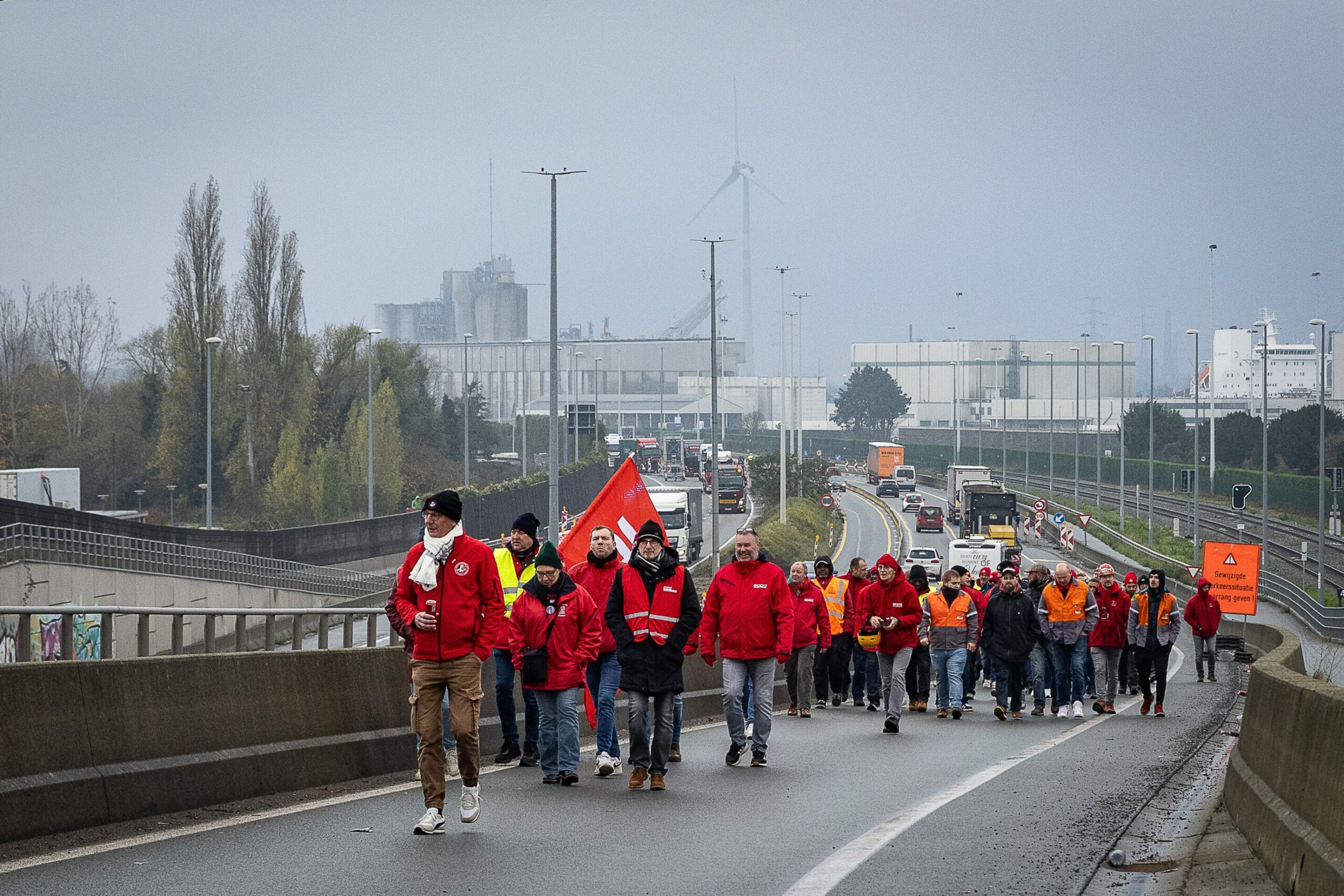 Picket lines were set up along John F. Kennedylaan, a central traffic route through the Ghent port area.