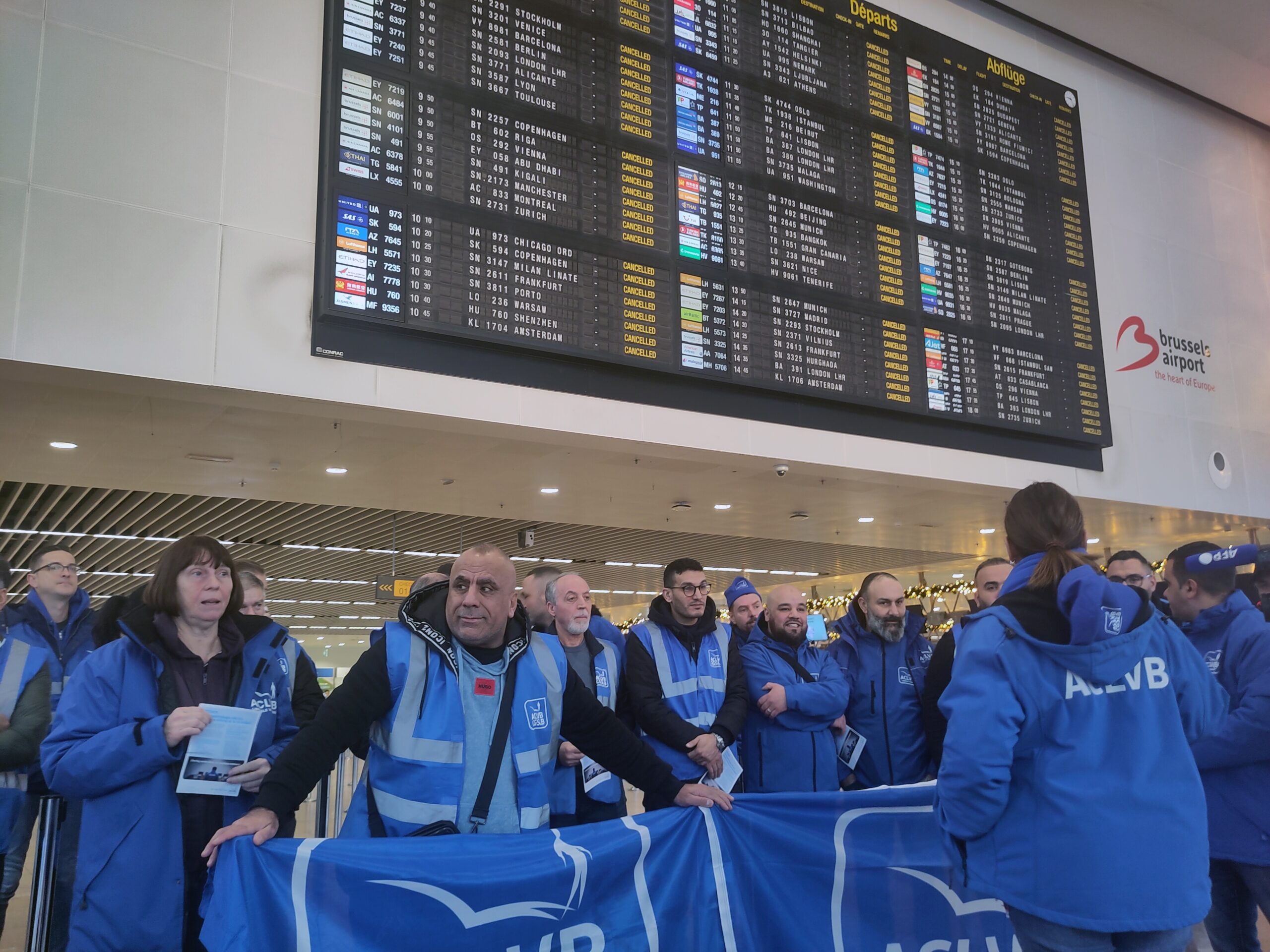 Union members protest at Brussels Airport on 26 November 2025. Credit: Belga/Ine Gillis