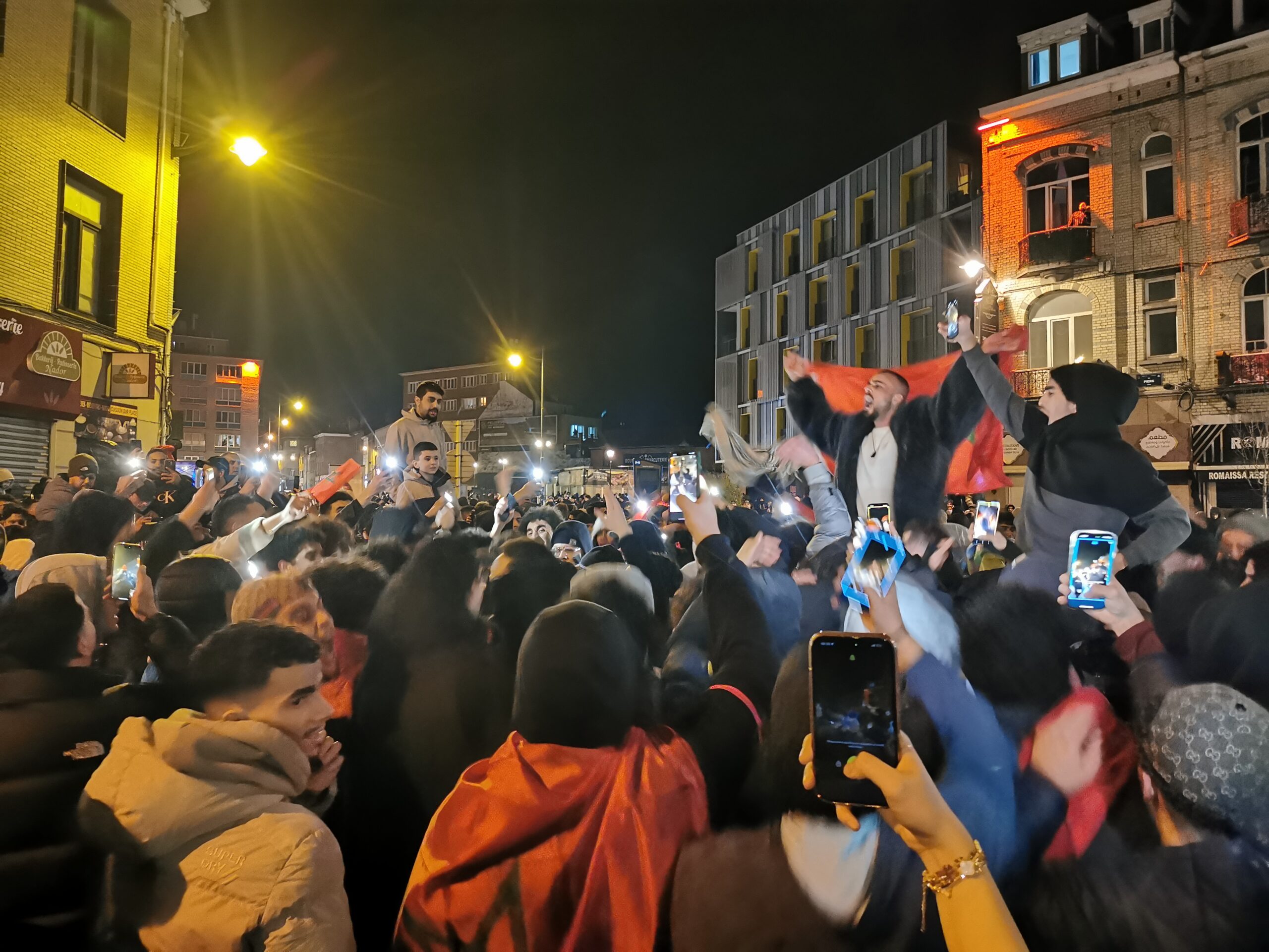 Moroccan fans celebrate in Molenbeek. Credit: Mateusz Kukulka/Belga