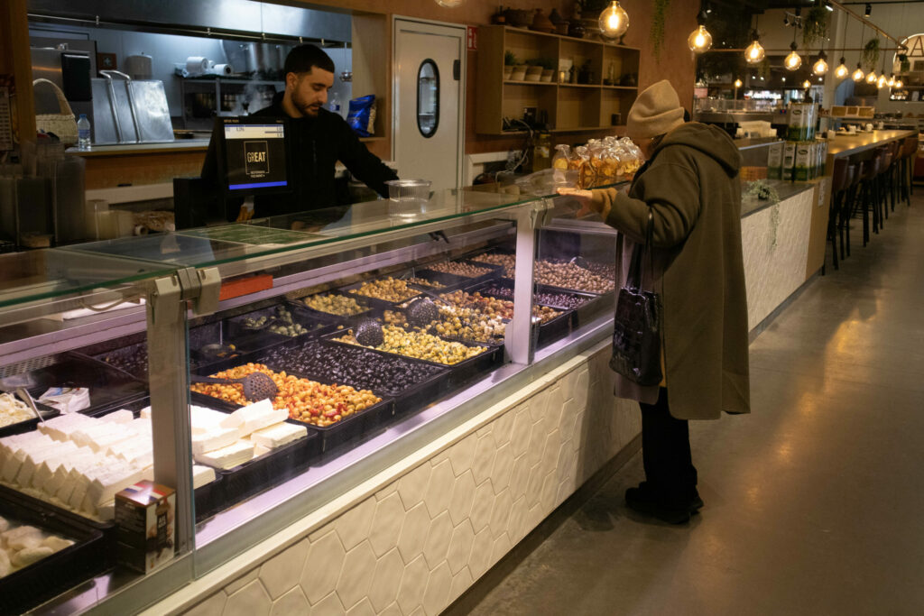 Customer at the olives and feta stand. Credit: Kosmos Khoroshavin / The Brussels Times