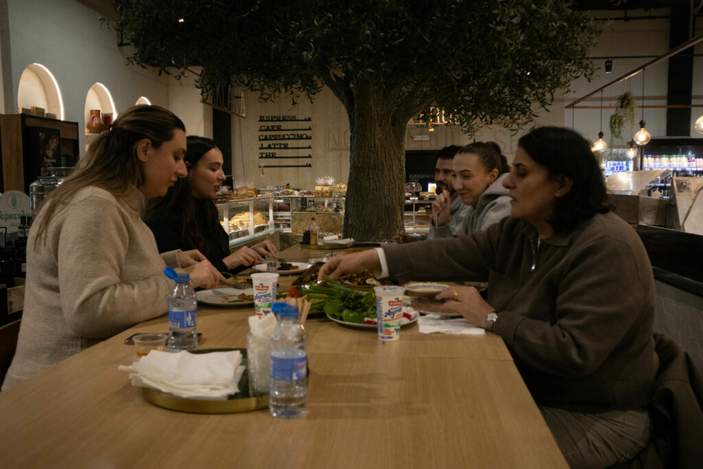 The Kriakos family and their friend having lunch at The Great Market of Schaerbeek. Credit: Kosmos Khoroshavin / The Brussels Times