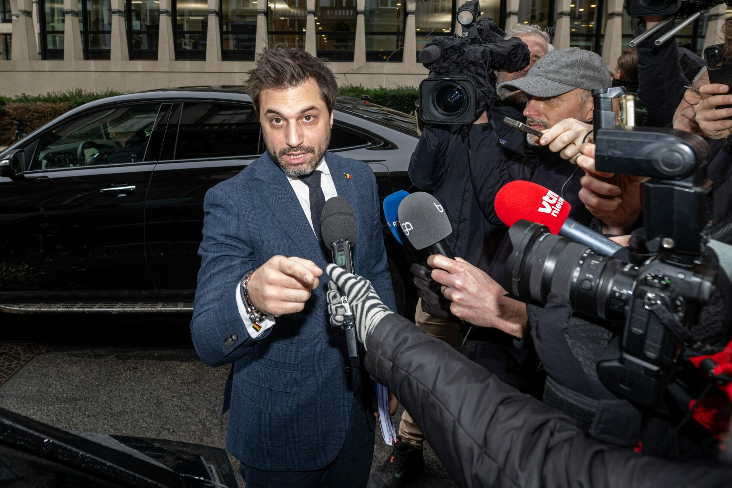 MR's Georges-Louis Bouchez arrives at the start of the conclave for the formation of a Brussels government, Tuesday 10 February 2026, in Brussels. Credit: Belga/Jonas Roosens