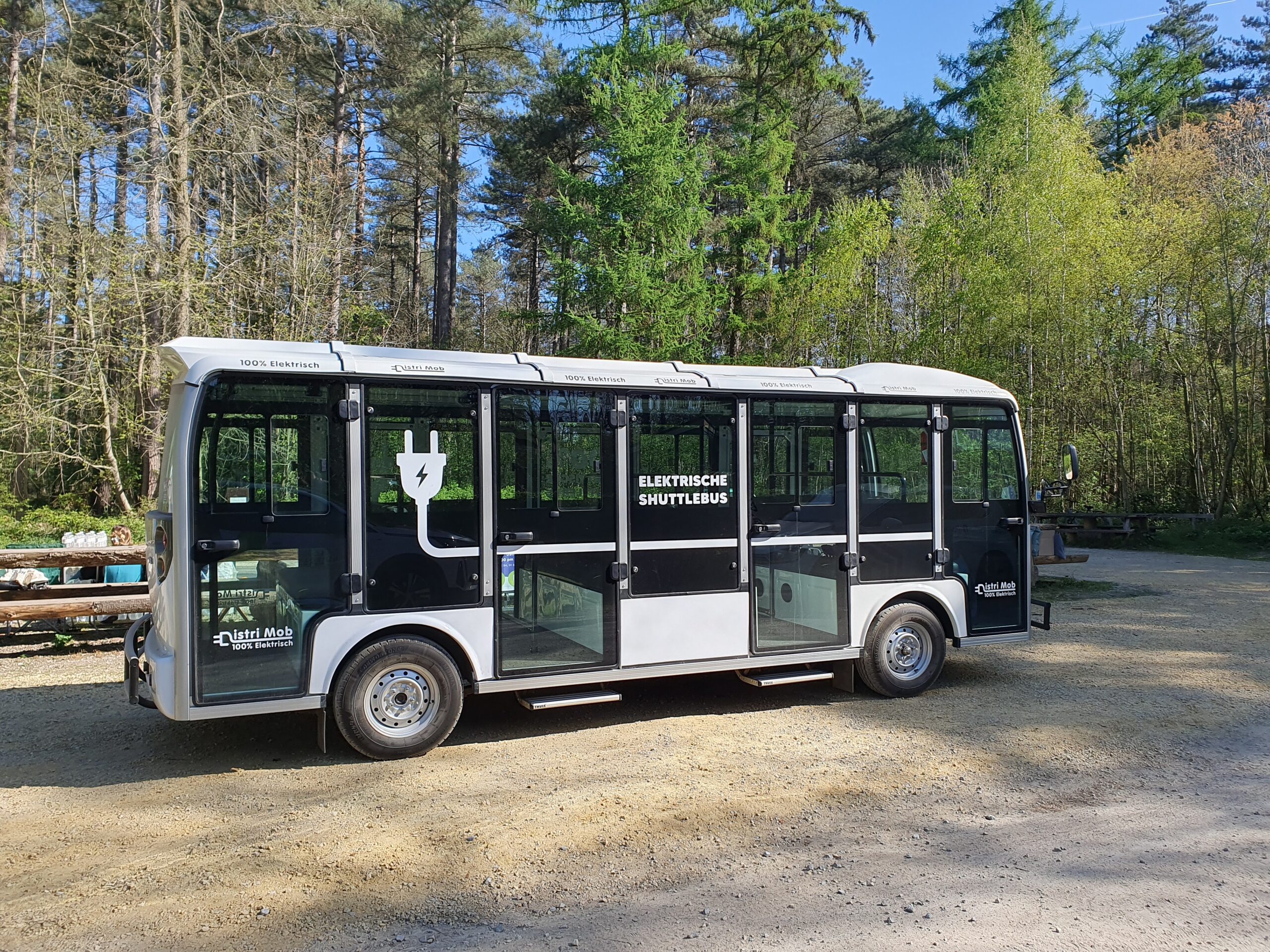 An electric bus is prepared for the bluebells festival in Hallerbos in Halle, Saturday 12 April 2025. Credit:Sjerneno Corvers/Belga