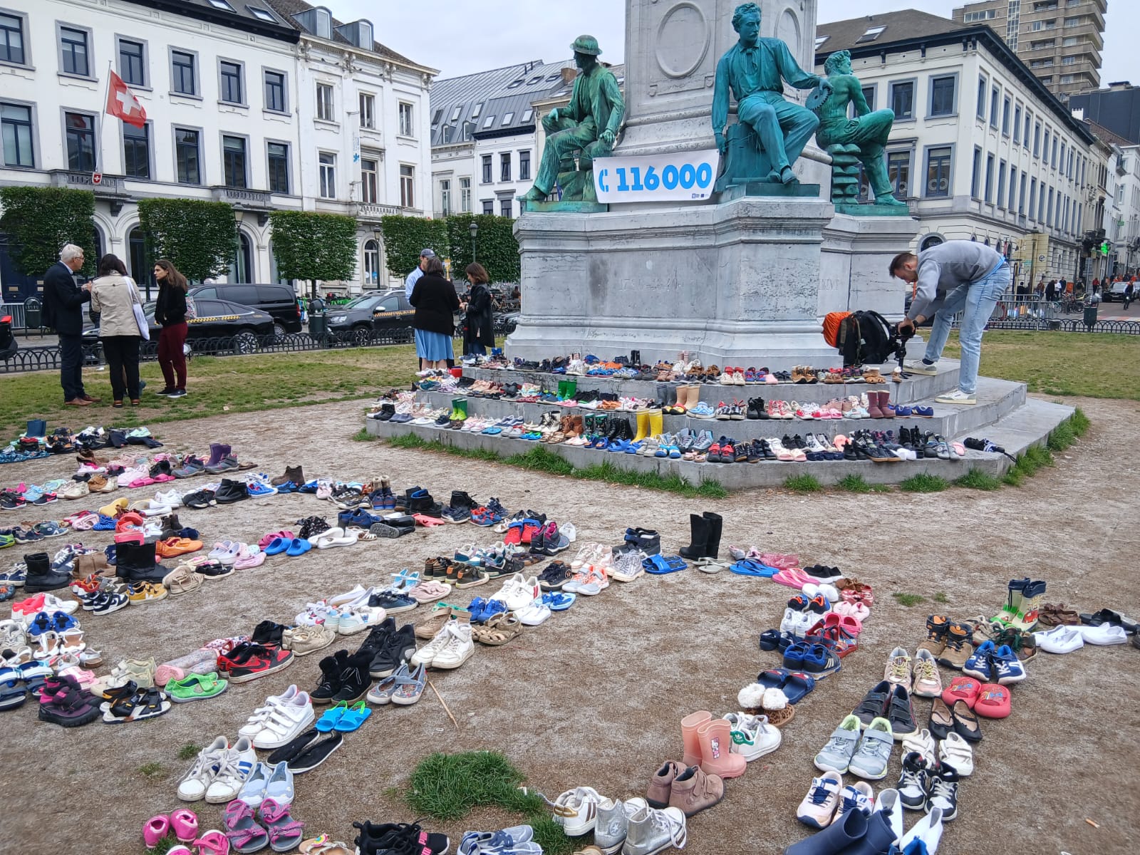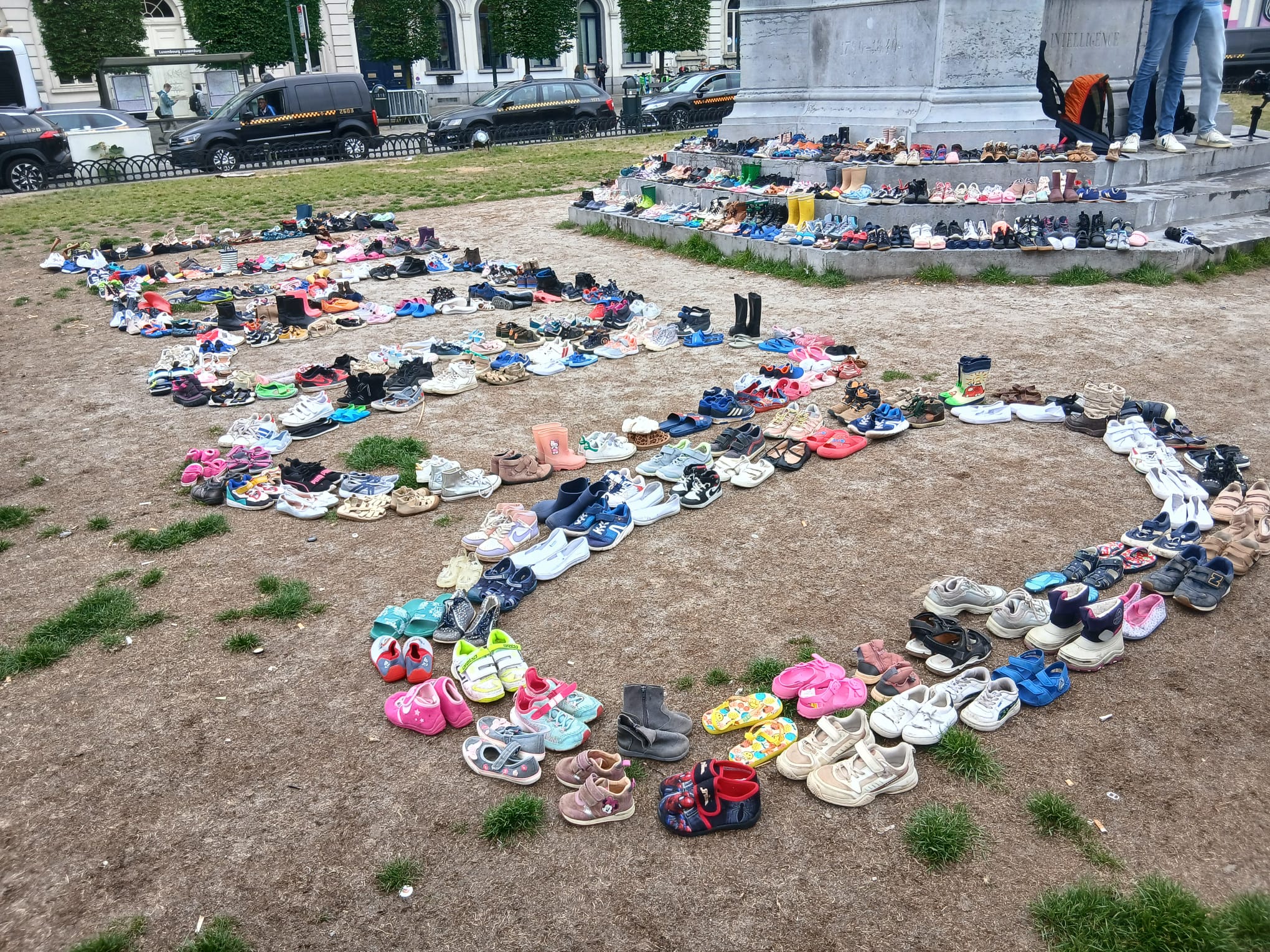 Children shoes at the Missing Children Europe's action. Credit: The Brussels Times/Rita Alves