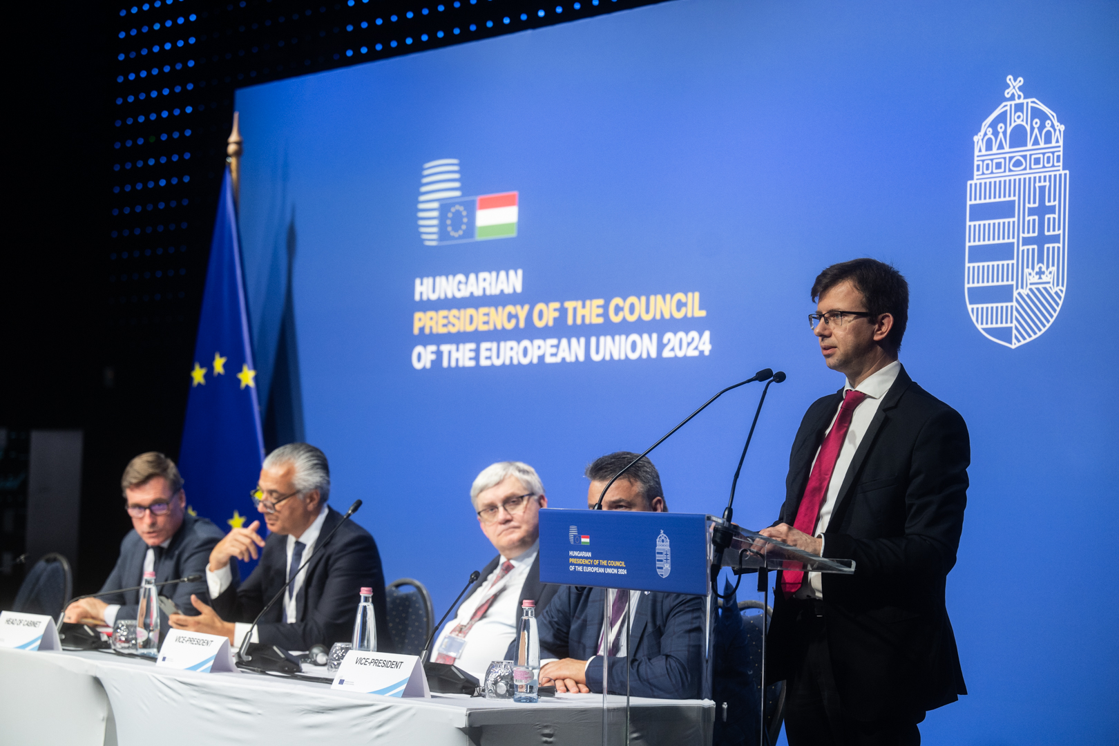 Hungarian Minister of EU Affairs János Bóka speaking at a meeting of the European Economic and Social Committee (EESC) ahead of Hungary's Council presidency.