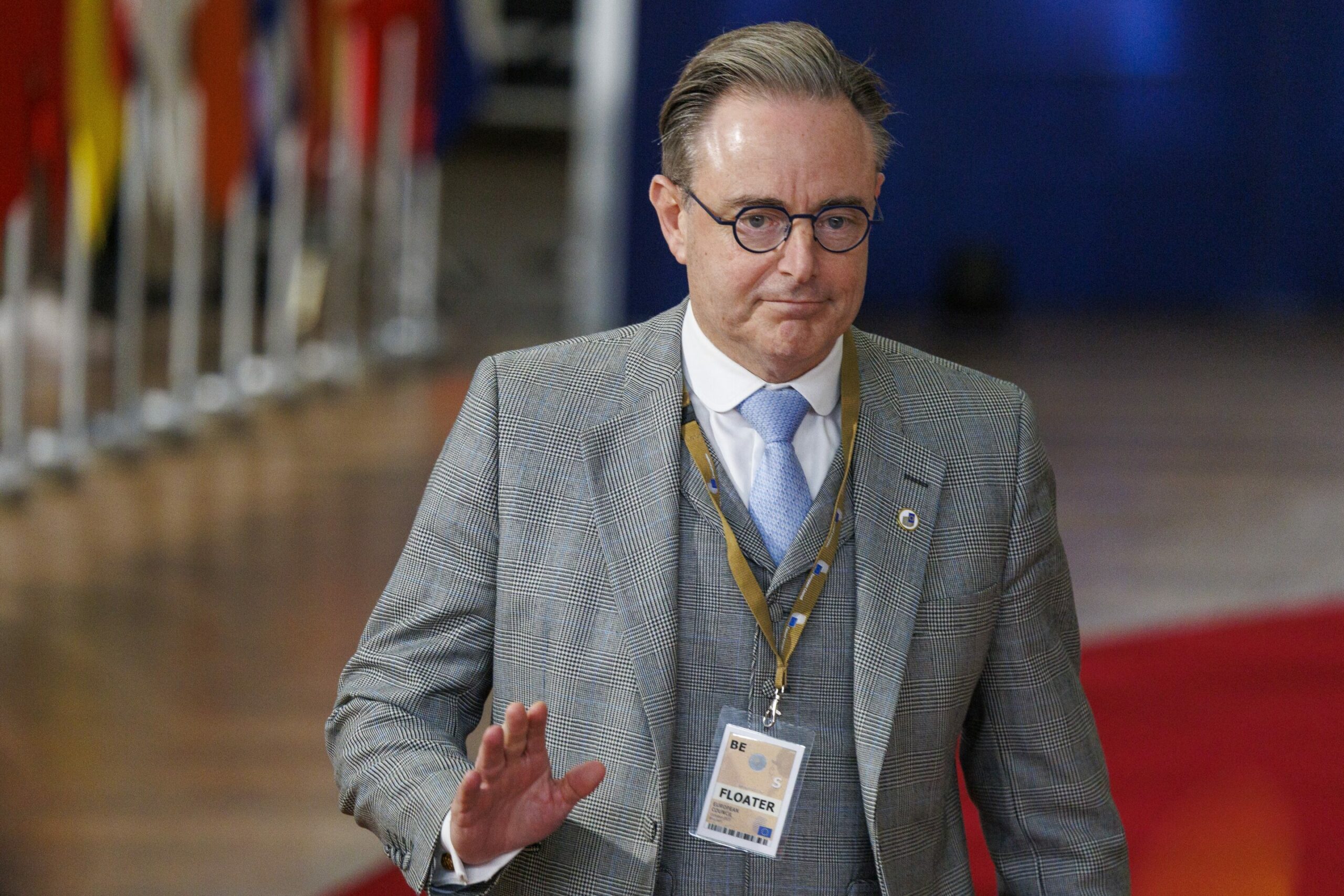Belgian Prime Minister Bart De Wever pictured at the arrivals ahead of a European council summit (23-24/10), in Brussels, Thursday 23 October 2025. Credit: Nicolas Maeterlinck/Belga