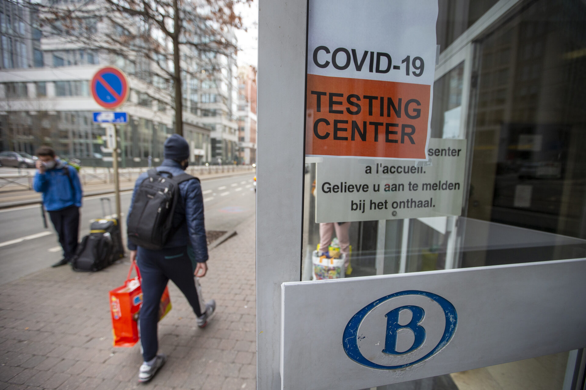 A Covid-19 test centre at the Bruxelles-Midi station in January 2021. Credit: Belga