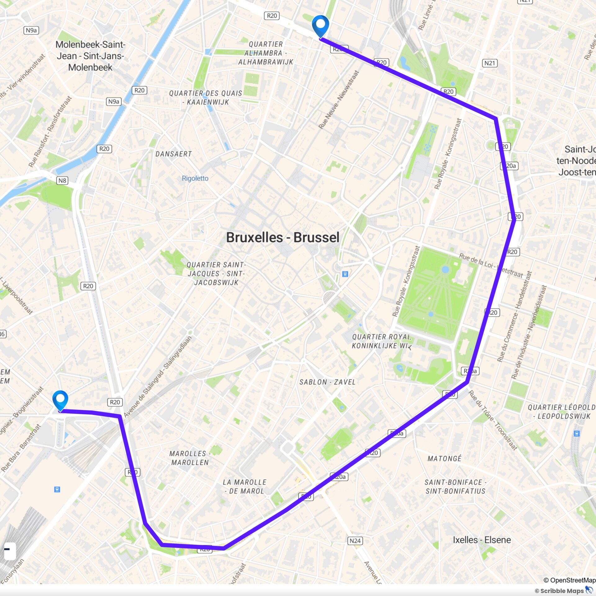 Route of the demonstration set to take lace on 12 March. Credit: Brussels-Capital/Ixelles police zone