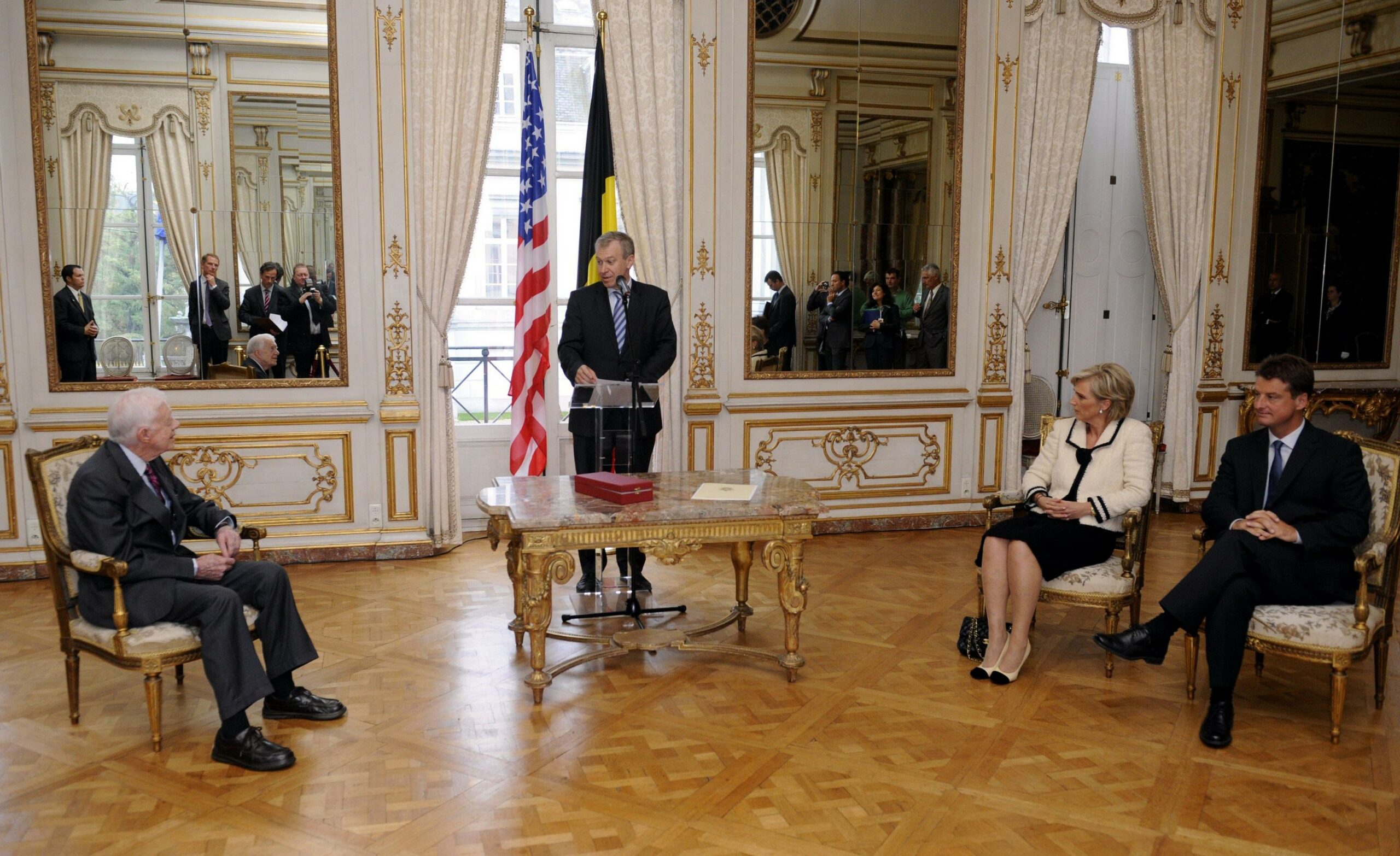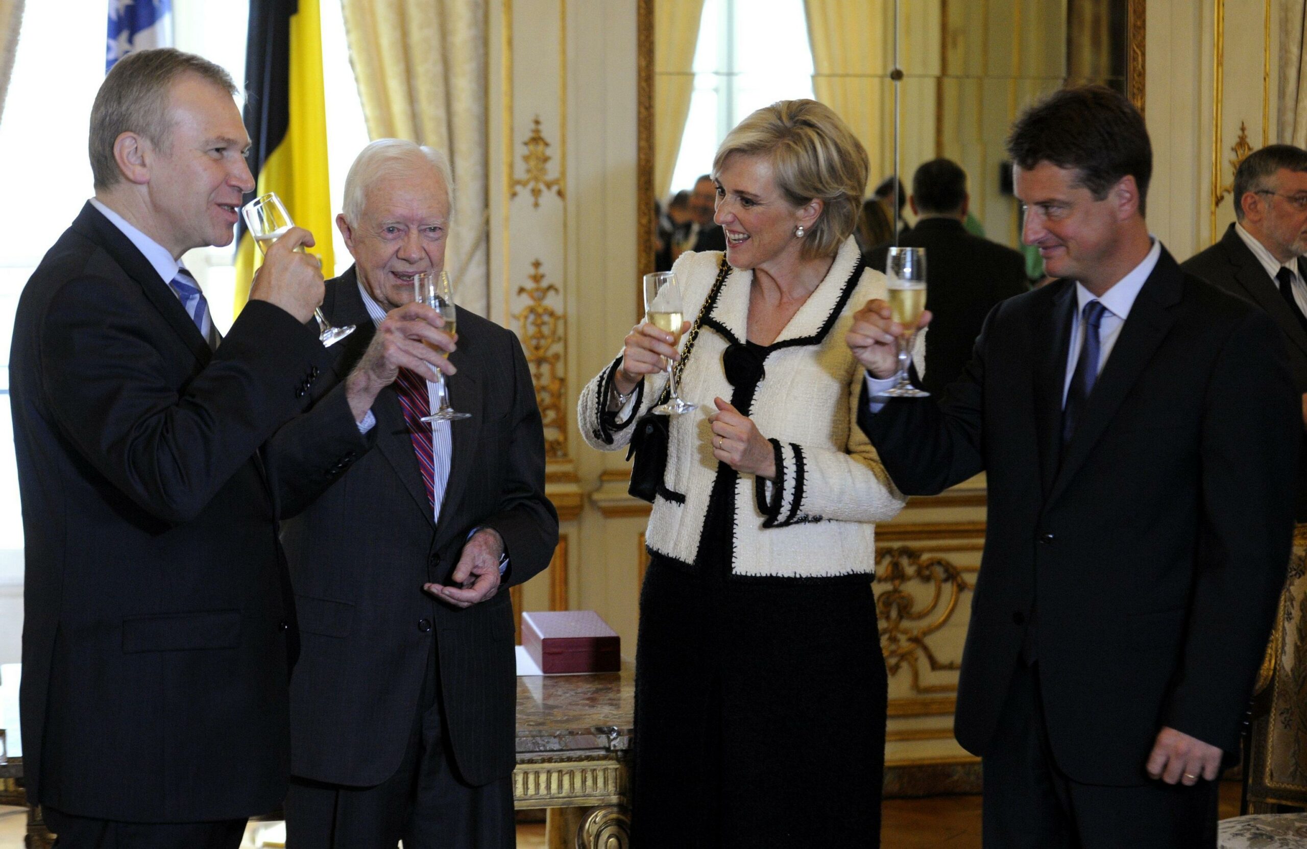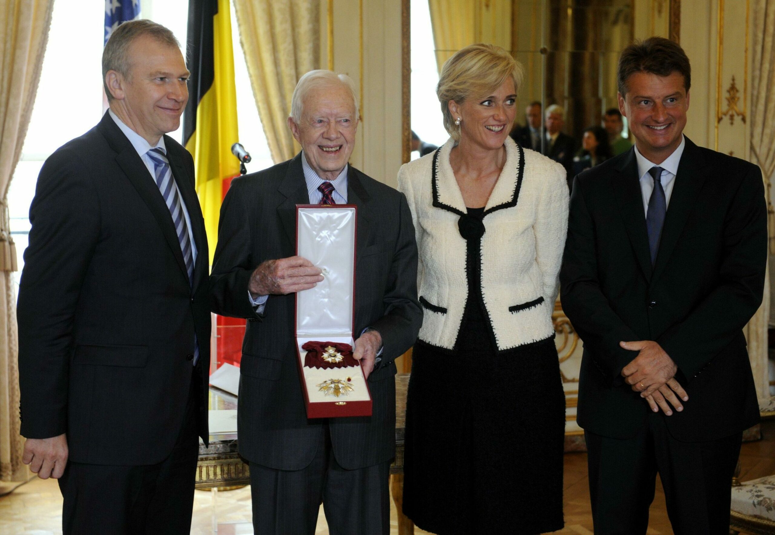 L-R: Former Prime Minister Yves Leterme, Jimmy Carter, Princess Astrid of Belgium and Outgoing Minister of Development Cooperation Olivier Chastel.