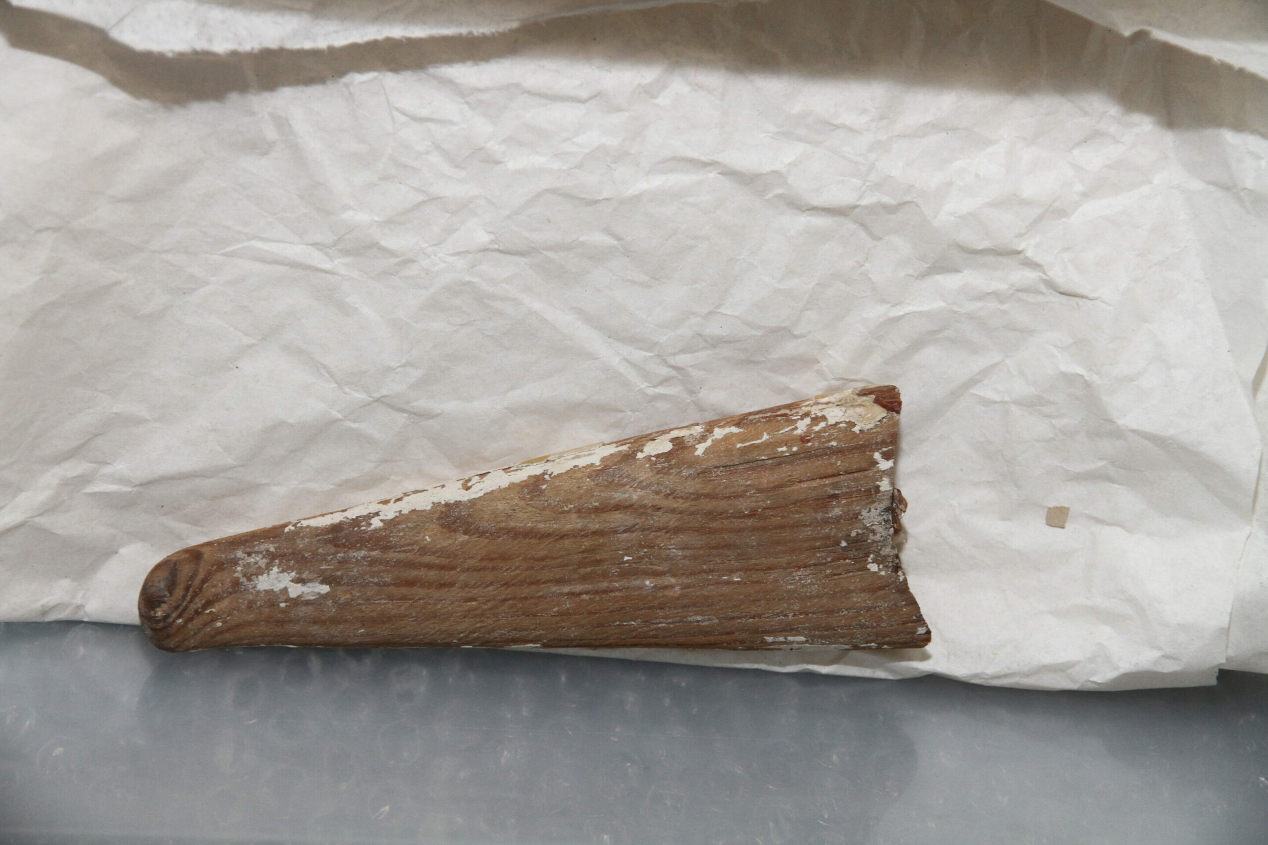 The most eye-catching piece, due to its size and rich decoration, is a wooden sarcophagus dating from the Ptolemaic period (around the 4th-3rd centuries BC). The other artefact is a piece of wooden beard.