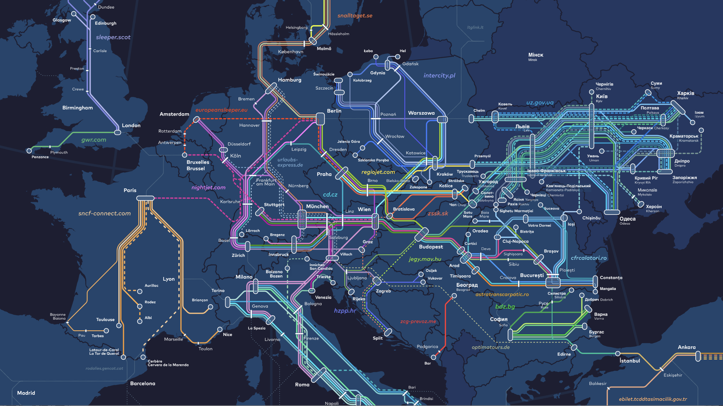 The 2024 night train map of Europe. Credit: Back-on-Track.eu